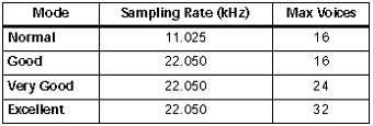 These four options determine the sound quality (i.e., sampling rate) and the number of voices that the SoftSynth can produce simultaneously. Select a mode appropriate for the CPU performance of your computer. If you choose a high quality mode and your computer does not have adequate processing performance, the SoftSynth may not produce sound fluently. In this case, select a lower quality mode.