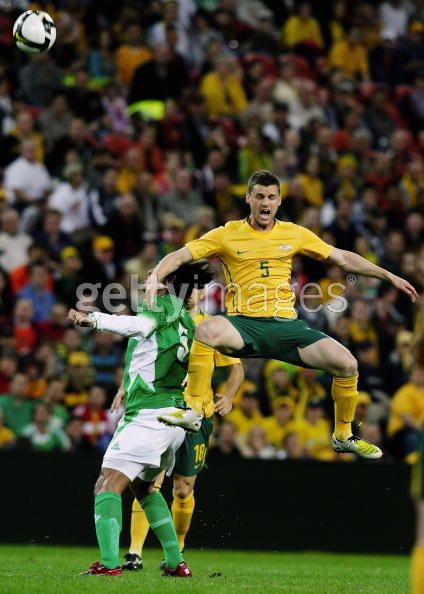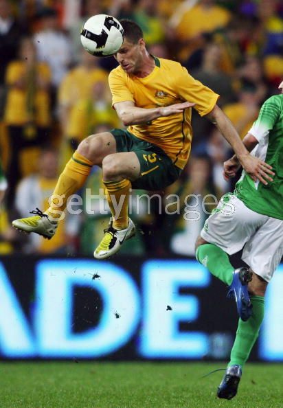 of the Australian Socceroos heads the ball during the