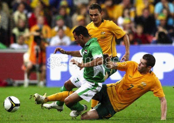 during the 2010 FIFA World Cup qualifying match between the Australian Socceroos and Iraq
