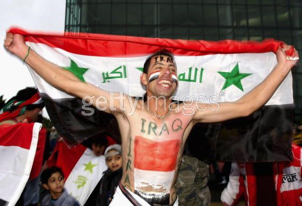 BRISBANE, AUSTRALIA - JUNE 01: An Iraq fan cheers prior to