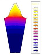 For the rectangular section inductor, we have the following maps of temperatures recorded in the tooth (fig. 5):