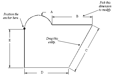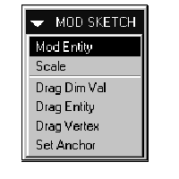 The Sketcher MOD SKETCH menu, shown in Figure 1-1, contains options for making dimension modifications. Using the Mod Entity option, you can specify values for dimensions, and then update the section by choosing Regenerate. The Scale option enables you to modify one dimension and have the entire section update proportionally. Additional options allow the user to modify dimensions and update the section in real time. These options are Drag Dim Val, Drag Entity, and Drag Vertex. Examples of each option are covered in the exercises to follow.