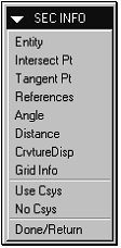The Sec Info menu (shown in Figure 1-11) enables you to get information about section entities. Table 1-3 discusses its options.
