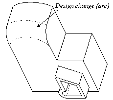 The Replace command swaps a new entity with an old entity during a section redefinition. All references to the old entity are automatically rerouted to the new entity. In Table 1-1, the design intent of the original part has changed such that the "top" of the part is to be redefined to have a slight radius.