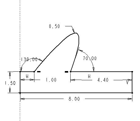 Delete the top edge and sketch an arc in its place. When the delete warning appears in the Message Window, enter [Y].