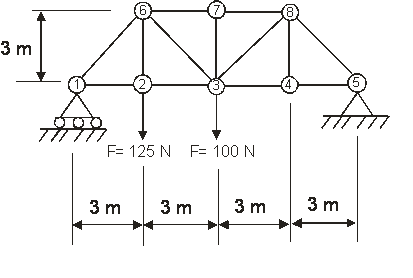 truss members = 3.0E-4 m ; Modulus of Elasticity = 2.07E11 psi; Circled numbers