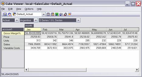 Dimensions are stackable in the Cube Viewer. Press now F9. Now values should be written in the grid. Arrange the dimensions in the following order: