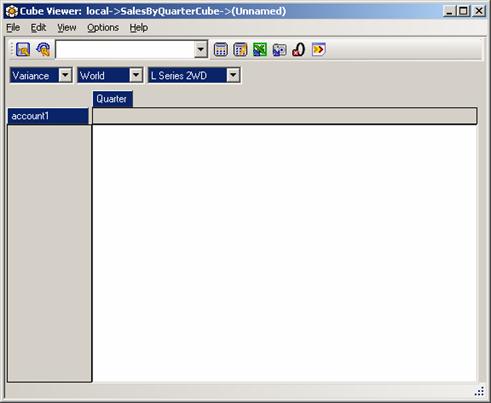 At this point we will explain how Views can be changed and saved by stacking dimensions and by choosing other elements. Close the Cube Viewer for the SalesCube and open the Cube Viewer for the SalesByQuarterCube by double-clicking on this Cube in the TM1 Server Explorer. After that the following window appears: