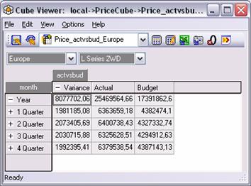 Close the Cube Viewer and open it one more time for the PriceCube The PriceCube has only four dimensions: actvsbud, region, model and month.