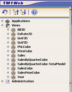 Applications - displays a list of applications that you can access through TM1 Web. These applications can contain shortcuts to TM1 Web sheets, cubes, and views.