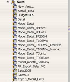 All saved views of the Sales cube are now displayed. Furthermore you can also create a new view by selecting New View..
