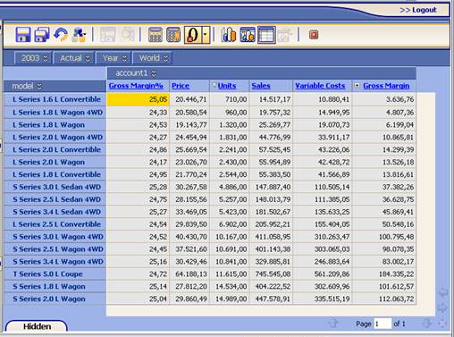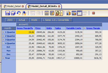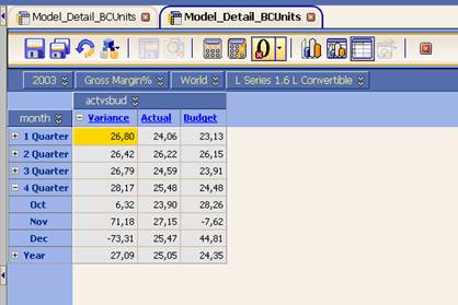 Click on Model_Detail_BCUnits. On the right hand side you can now see the elected view. The navigation through the cube corresponds to the navigation within the Cube Viewer in TM1.