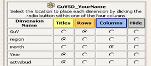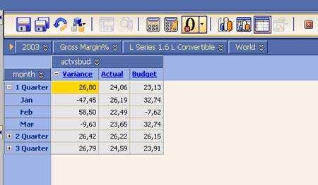 Here you can once again select the dimensions of the title bar. If you want, for example, compare the values of Budget and Actual, click on actvsbud: