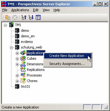 Switch to TM1 Perspectives and choose the schulung_web Server