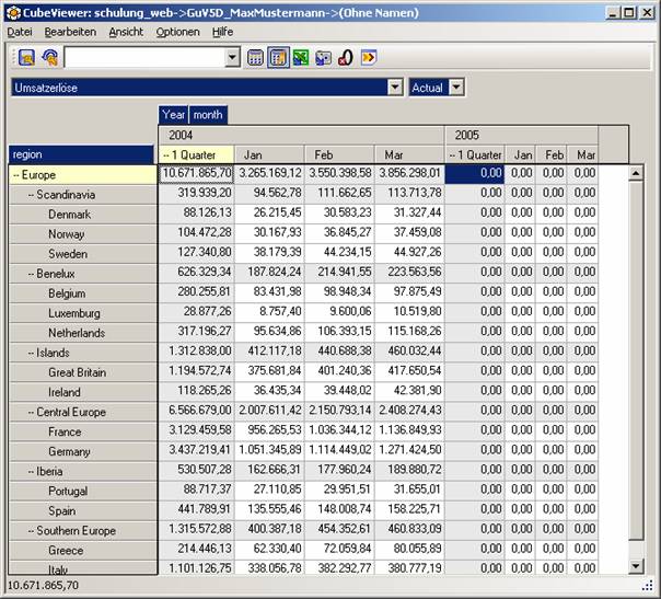 once again the application GuV5D_Umsatz_Europe_Q1_0405.xls and export
