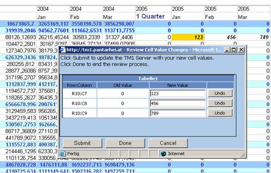 - TM1 Web has the advantage that you are allowed to insert multiple cells, which is not possible in Excel as it would usually overwrite the sending switch.