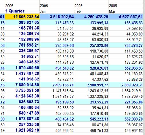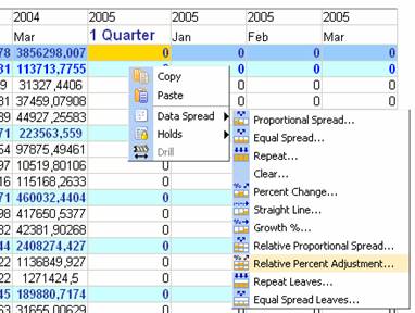 Now you have used the data from 2004 to plan for 2005. If necessary you can also apply other data spread functions, in order to define a % increase in a particular domain.