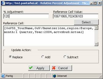 The divers data spread functions that you already know from TM1 Perspectives, provide a second possibility of inserting data in TM1 Web Applications.