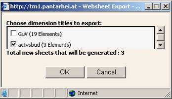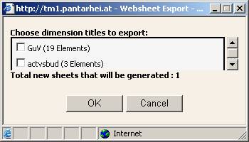 If you also want to export the various variations of the title dimensions you have to click on the corresponding check mark. In the case of actvsbud 3 sheets will be generated, one for Active, another one for Budget, and a third one for Variance.