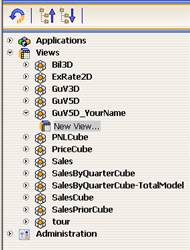 In TM1 Web, switch to the View of your previously created cube GuV5D_YourName and click on New View.