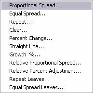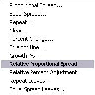 The Relative Proportional Spread method spreads values to the leaves (children) of a consolidation proportional to the leaves of a reference cell.