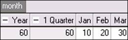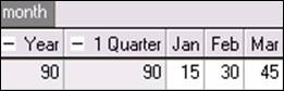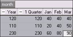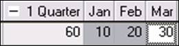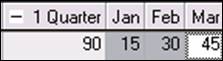 Select the cell or range of cells from which you want to initiate data spreading (1 Quarter)