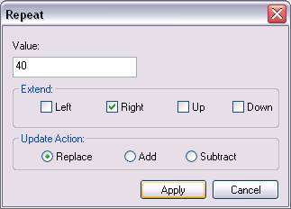 TM1 repeats the value you entered in the directions you specified or across the range of cells selected.