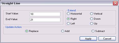 The Straight Line data spreading method fills cube cells by linear interpolation between two specified endpoints.