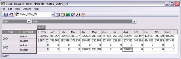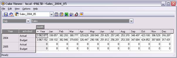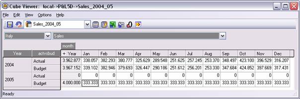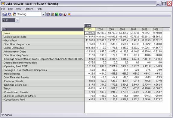 You want to conduct the planning for 2005. The values should be distributed as in Actual 2004 but the consolidated value Year should increase to .