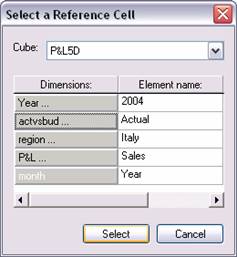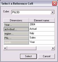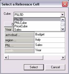 In the dialog you have to select the relative position. The reference cell can be located in the cube from which you initiate spreading or in a separate cube. The reference cell must, however, share the same exact consolidations as the cell from which you initiate spreading.