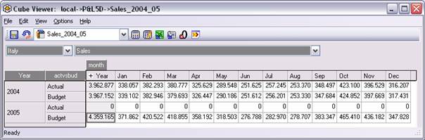 The reference cell is Year, Actual . Now we want to increase this value by 10% for the planning of Year, Budget while keeping the ratio in the months constantly.