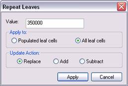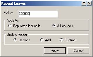 The Repeat Leaves method copies a specified value to the leaves (children) of a consolidation. When you apply this method, you can choose to copy the value to all leaves of the consolidation or only to those leaves already containing non-zero values.