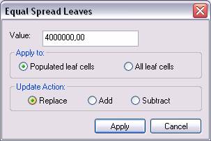 The Equal Spread method distributes a specified value equally across cells in a view.