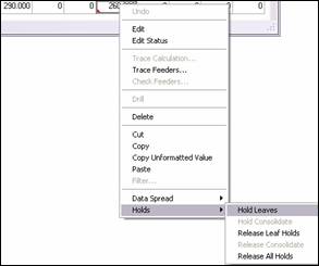 TM1 includes a Leaf Hold feature that enables you to exclude cells from data spreading operations. The Hold feature can be used in the Cube Viewer, the In-Spreadsheet Browser, and slice worksheets.
