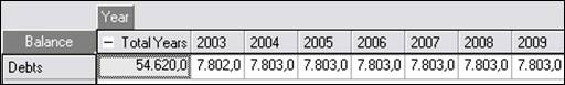Repeat the leave of 2004 for the spreading of Debts for the balance sheet in Bal3D.