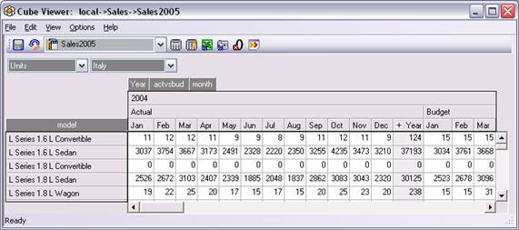 Copy the values from Actual 2004 to Budget 2005 without L Series 1.6L Convertible.