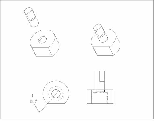 Insert the cylindrical surface of the shaft into the cylindrical surface of the hole. (Alternatively, Align both axes. Either method works.)