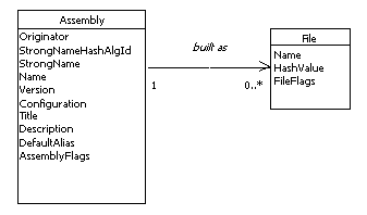 Information recorded for each such file is its file name and the hash of the file as it existed at the time the assembly was built. All files within an assembly are hashed using the same algorithm, as defined on the assembly. The file names recorded in this table are unqualified names, i.e they contain no path information, but they must include the file extension - the class loader cannot load modules that don't have file extensions. The Common Language Runtime class loader assumes all files in the assembly are in the same directory.