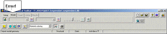 If you do not have a parasolid translator, copy the file suspension.db instead. When you reach section 3.1 (Model Import), select ANSYS (*db*) for type of file and import the suspension.db file.