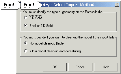 F. Another dialog box will open asking you to choose import options. Select Shell or 2-D Solid.