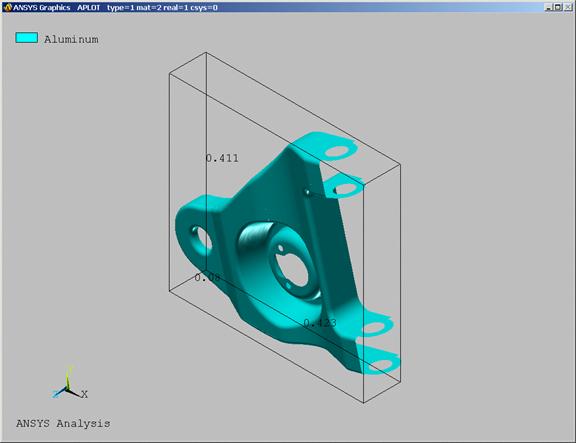 I. ANSYS will import the Parasolid file and draw the part in the graphics window. Use the dynamic viewing controls to view all portions of the model.