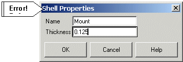 G. In the shell property dialog box, enter Mount for the name and a thickness of 0.125.