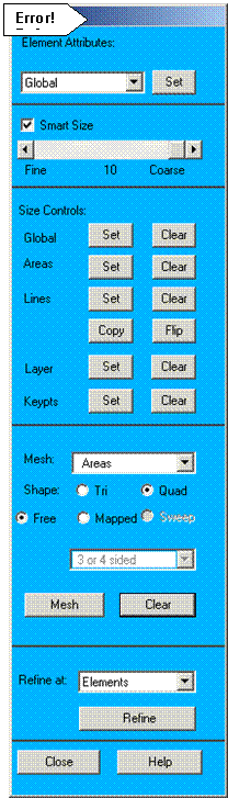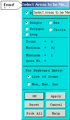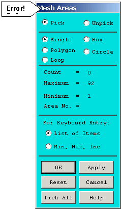 C. A dialog box will appear asking you to select areas for meshing. Click on the Pick All button. ANSYS will mesh may take a few minutes. When meshing is complete, the mesh will briefly appear in the graphics window, and disappear in the areas replot.