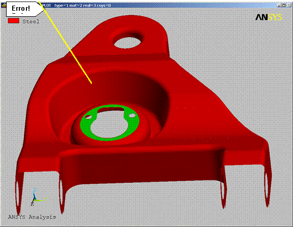 This exercise will analyze an automobile suspension bracket. The bracket is mounted to the automobile frame in the center hole, and to the wheel linkage on the front and rear holes. The objective of the analysis is to evaluate stresses under a limit load condition. The bracket is expected to yield, therefore a plastic analysis will be necessary. The Parasolid model will be imported into ANSYS and shell meshed, and analyzed elastically entirely within the MTB the first time through. We will then transition to ANSYS Mechanical to perform a plastic analysis.