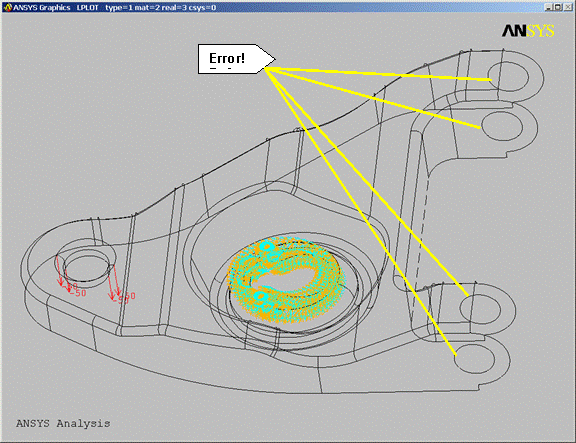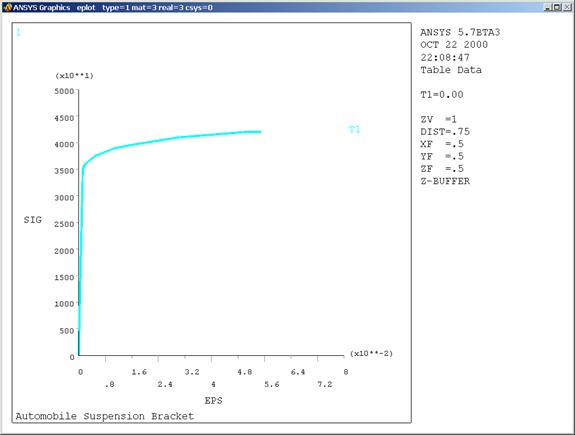 The next step is to go into the fully functional ANSYS Classic Interface perform the plastic analysis. The steel bracket has a yield strength of 35 KSI, yet the linear elastic analysis we just performed says the stress is over 60 KSI. By repeating the analysis with nonlinear materials, we can predict the plastic stress, plastic strain, and the permanent deformation.