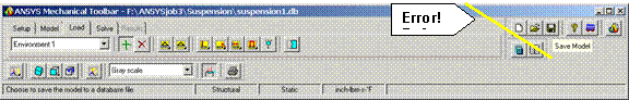 A. We have completed the nonlinear materials and solution control definition for the model. Let's save our work before proceeding. In the ANSYS Toolbar, click the SAVE_DB button.
