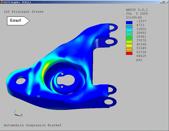 What does this tell us about the design? If these loads occurred on the part in a real passenger car, would the result be catastrophic? Since the yielding is very localized, the result will be some permanent deformation of the part and possibly some misalignment of the wheel.