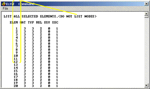 First, we must determine the material ID reference number used by the elements in our model. We can do this by listing elements.