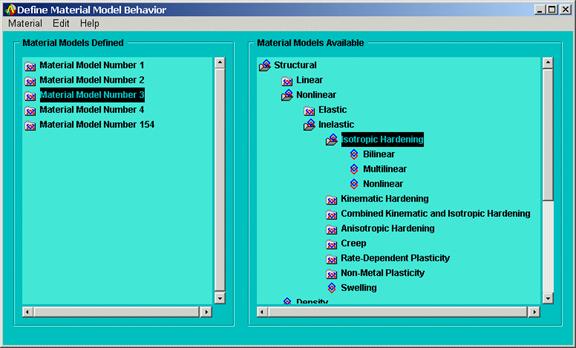 There are several nonlinear material behavior laws available in ANSYS. For this problem, we will use the Multilinear isotropic hardening rule.