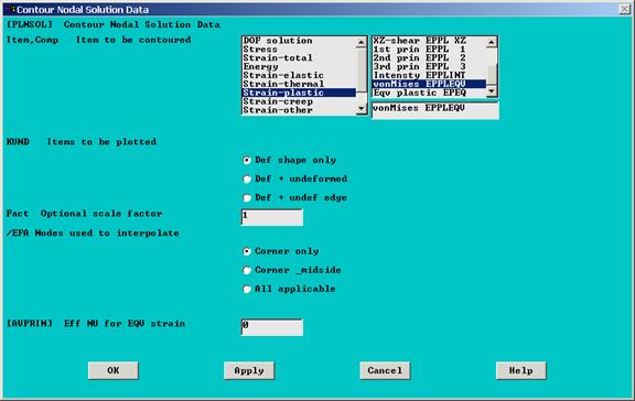 A. In the Contour Nodal Solution Data window, select Strain-Plastic